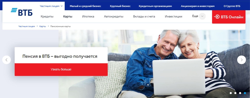 ВТБ оказывает финансовую поддержку клиентам, получающим пенсию на карту банка, и ежемесячно начисляет 7% годовых на остаток по счету до 100 тыс. рублей. Банк за свой счет оформляет страховки карт и счетов пенсионеров от мошенников. ВТБ также предоставляет пенсионерам другие меры поддержки, например, клиенты старшего поколения могут снимать средства с карты в банкоматах сторонних банков без комиссии. В 2022 году этой опцией воспользовались более 290 тысяч клиентов, которые совершили почти 2,7 млн таких операций. Кроме того, банк предлагает онлайн-сервис по переводу пенсии на счет ВТБ с доставкой карты на дом.