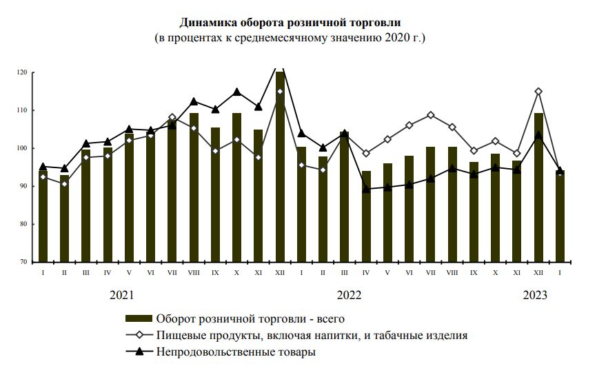Также статистики оценили оборот предприятий общественного питания. С учетом деятельности индивидуальных предпринимателей в январе 2023 года он составил 421,5 миллиона рублей, или 103,4 процента (в сопоставимых ценах) к уровню января 2022 года. Что касается оптовой торговли, то ее оборот, с учетом организаций всех видов деятельности, в минувшем январе составил 17,9 миллиарда рублей, или 117,4 процента (в сопоставимых ценах) к уровню января 2022 года. На долю субъектов малого предпринимательства приходилось 27,6 процента оборота оптовой торговли, подметили также статистики.