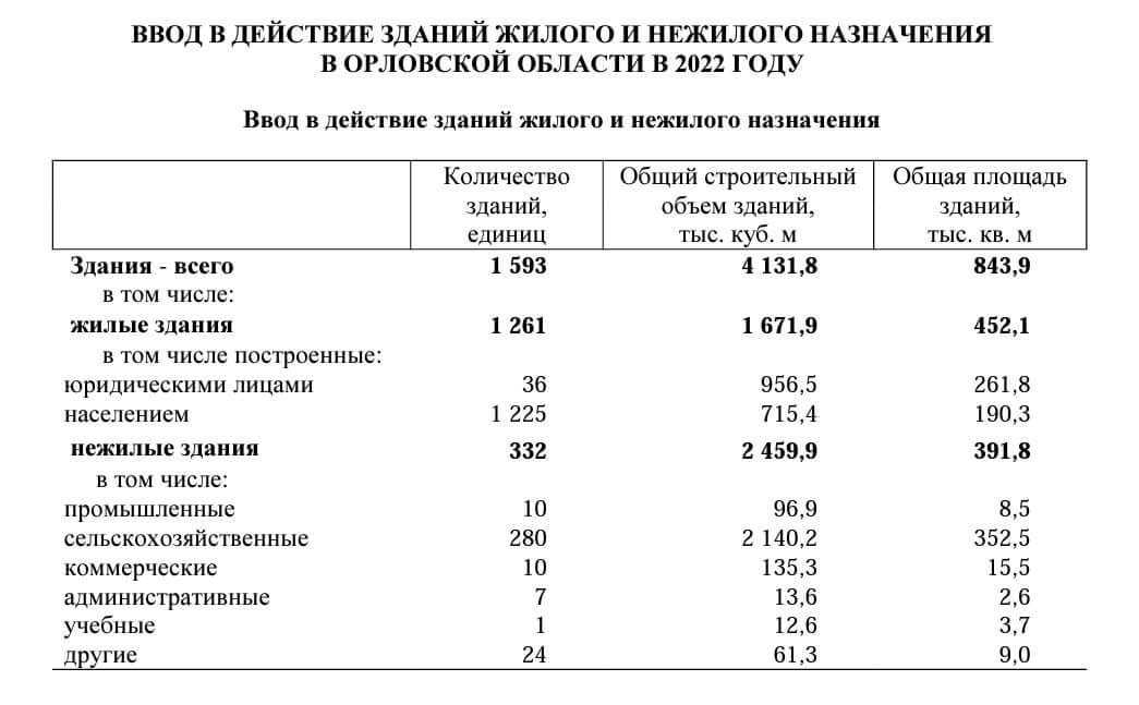 Однако стоит сказать, что Воронежская область является единственным в Черноземье регионом, в котором в год сдается более 1 миллиона жилых «квадратов». Причем в 2022 году был достигнут рекордный показатель в 1,92 миллиона квадратных метров жилья. На этом фоне орловские 374 тысячи «квадратов» выглядят не очень впечатляюще. Тем временем, пресс-служба губернатора сообщила, что в минувшем году в Орловской области всего в эксплуатацию было введено 1593 здания общим строительным объемом 4,1 миллиона кубометров.