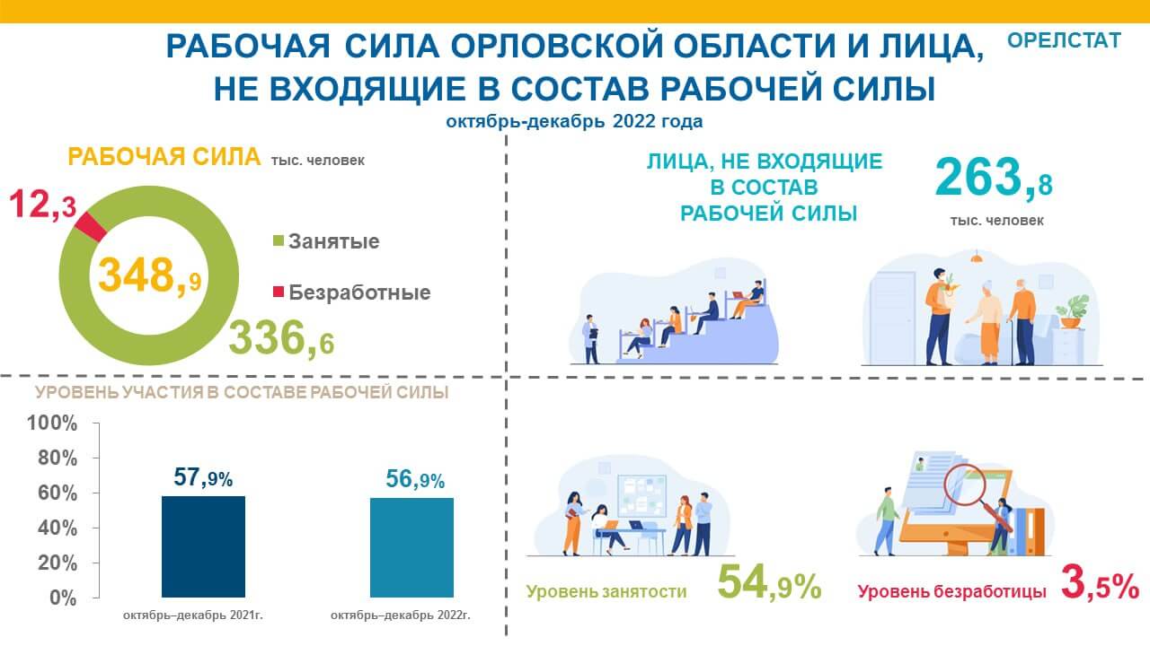 Орелстат подвел итоги выборочного обследования рабочей силы за октябрь-декабрь 2022 года.