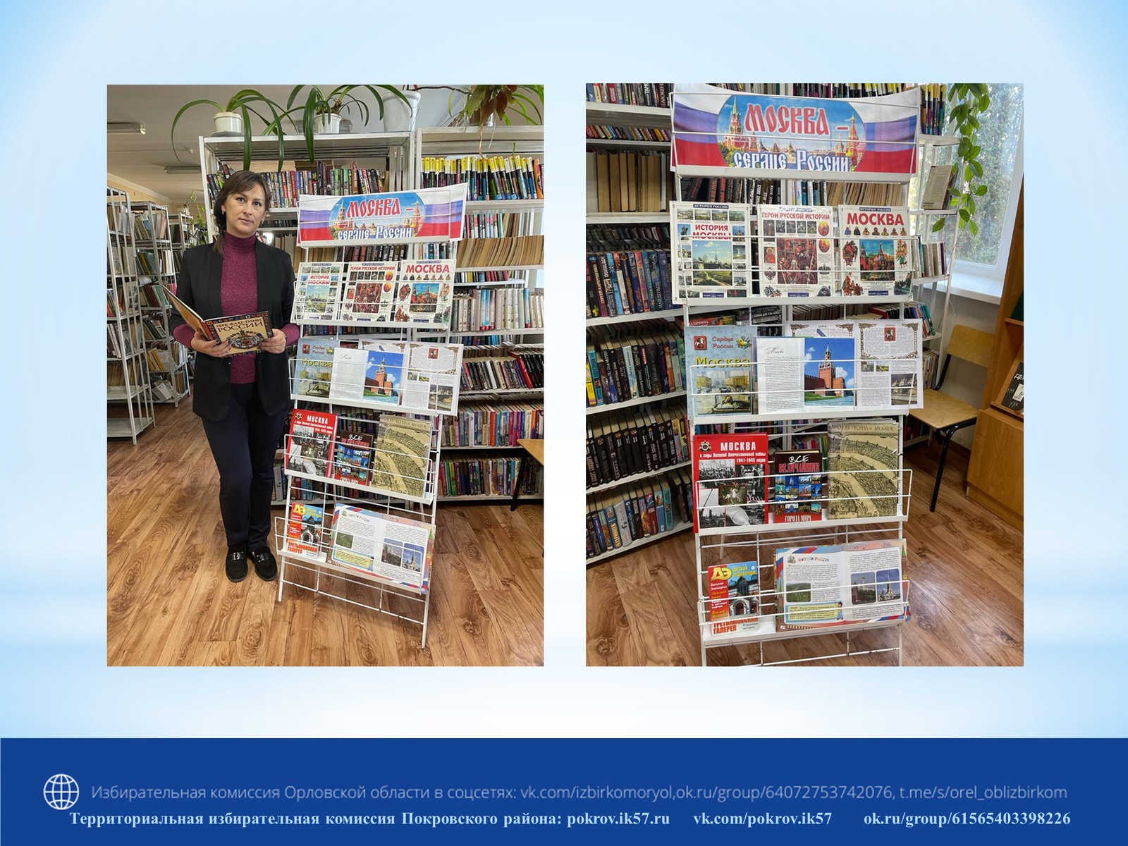 С 8 по 30 сентября 2023 года в центральной районной библиотеке им. С. Н. Оловенникова проходила книжно-иллюстрированная выставка «Москва - столица Родины моей».