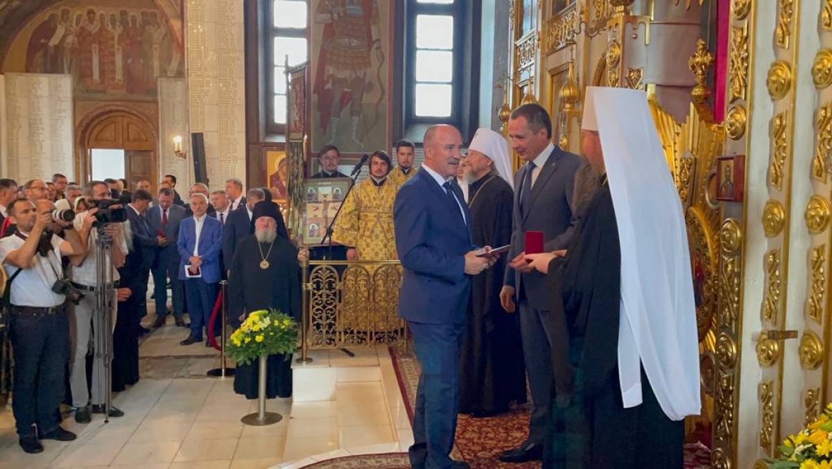 Медаль Леонид Музалевский получил из рук Губернатора Белгородской области в Храме святых первоверховных апостолов Петра и Павла.