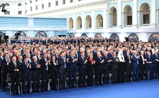 «Хочу отметить очень важный, на мой взгляд, момент — за время выступления Президента присутствующие вставали много раз, аплодисментами выражая поддержку национальному лидеру. Это, и я здесь абсолютно уверен, доказательство единства российского народа, его сплоченности, его силы и его духа!»