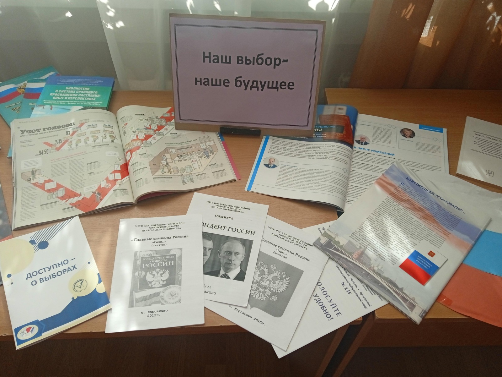 В рамках Дня молодого избирателя, который проходит каждый год в третье воскресенье февраля в соответствии с постановлением ЦИК России от 28 декабря 2007 г. № 83/666-5 «О проведении Дня молодого избирателя», в МБУК «ЦБС Корсаковского района» организована тематическая выставка «Наш выбор — наше будущее».