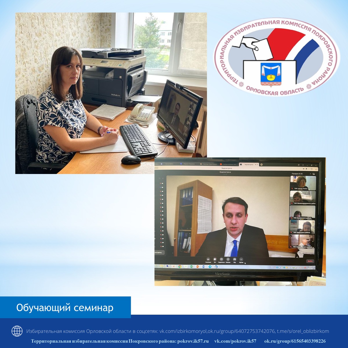 4 мая председатель территориальной избирательной комиссии Покровского района Надежда Воробьева приняла участие в обучающем семинаре с представителями территориальных избирательных комиссий Орловской области в режиме ВКС.