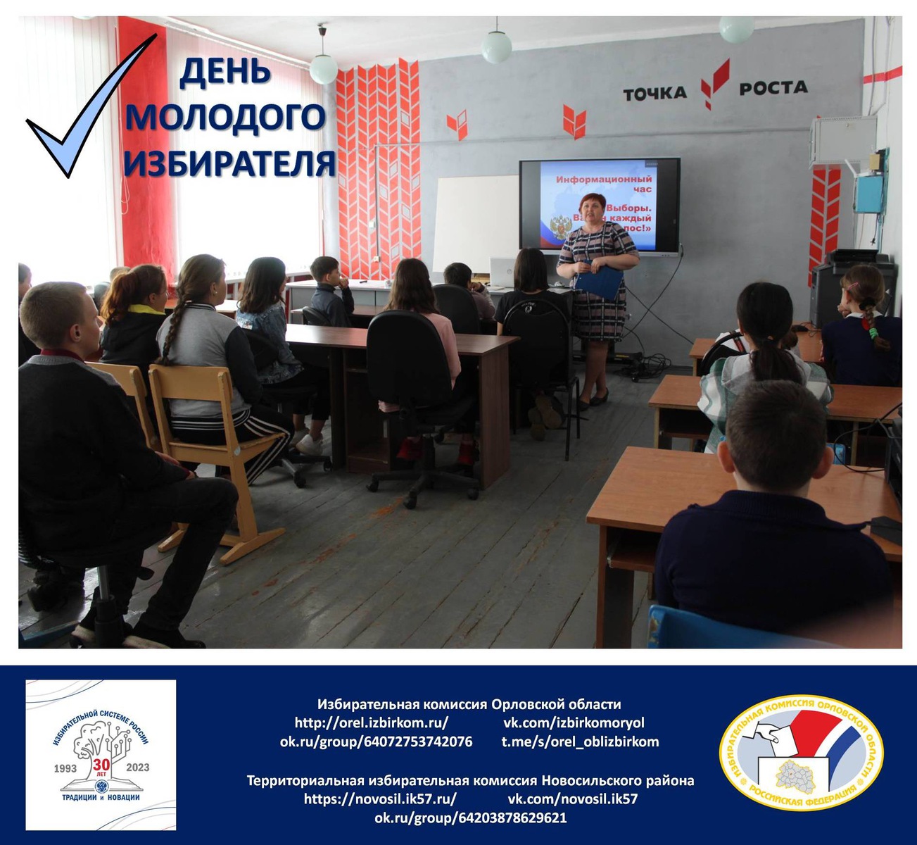 16 мая 2023 года территориальная избирательная комиссия Новосильского района провела Информационный час «Выборы. Важен каждый голос!», в котором приняли участие ученики МБОУ Голунская СОШ.