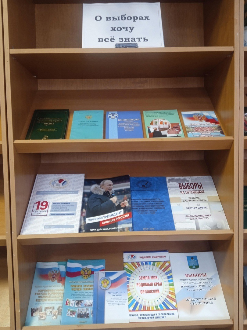 В рамках Дня молодого избирателя в МБУК ЦБС Корсаковского района оформлена выставка "О выборах хочу все знать", на которой представлена литература о выборах и избирательном процессе.
