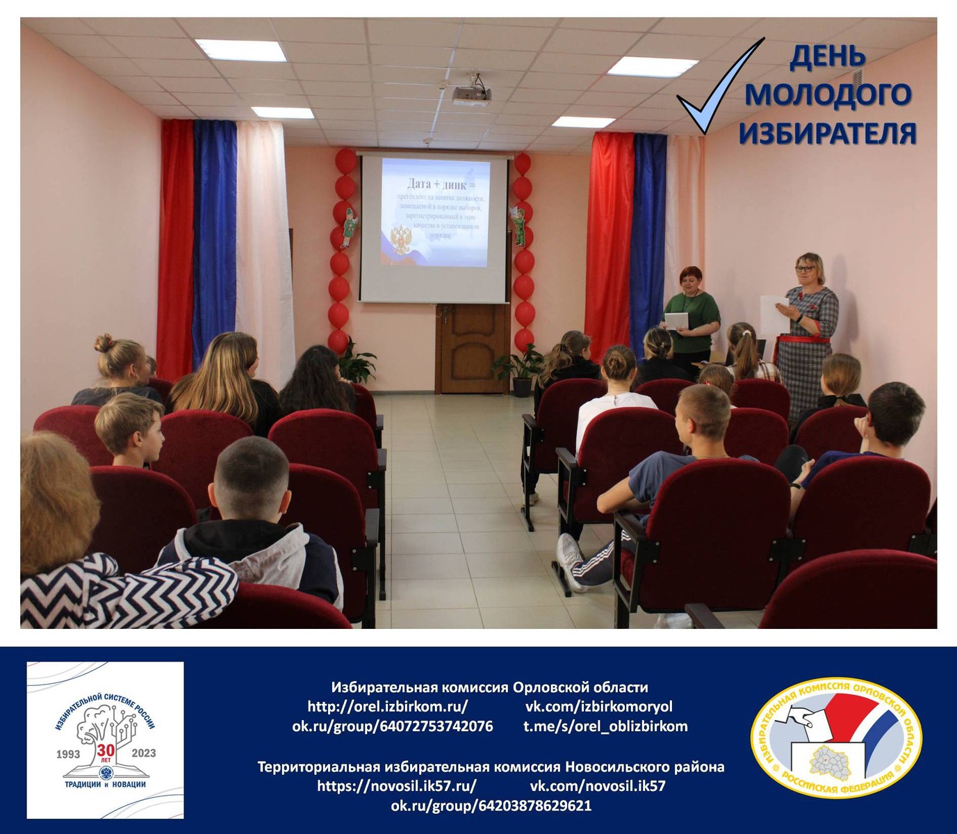 17 мая 2023 года территориальной избирательной комиссией Новосильского района была организована и проведена лекция – викторина «Я – гражданин России», которая посвящена 30-летию избирательной системы РФ.