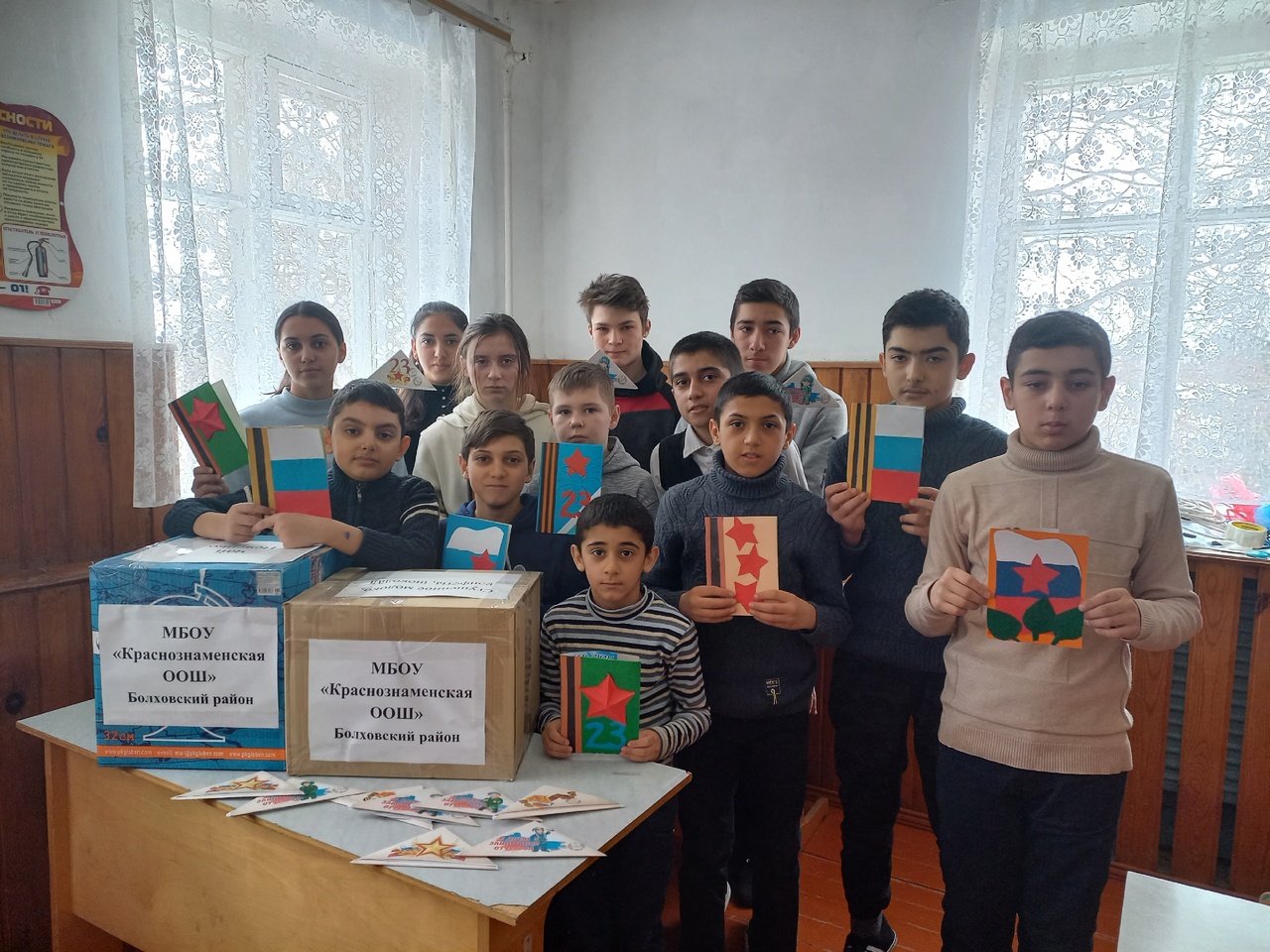 В преддверии дня Защитника Отечества коллектив школы, обучающиеся, воспитанники, а также их родители приняли активное участие в акции «Спасибо нашим Героям». Обучающиеся школы написали письма солдатам и сделали открытки, в которых поздравили их с праздником. Затем приступили к сбору посылки.
