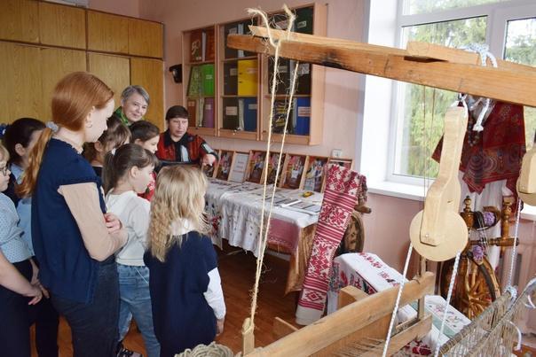 Дети с интересом смотрели на старинный ткацкий станок, рушники, вышивку крестом, гладью, сравнивали работу ручную с современной машинной вышивкой.