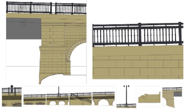 Что касается ограждений, то их решено сделать, как упрощенную версию моста 1949-1950 гг. От декоративных накладных элементов пришлось отказаться – в архивах так и не нашли четких картинок этих фрагментов.