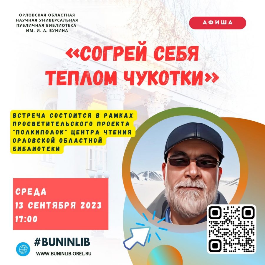 Первая встреча в рамках проекта состоится 13 сентября 2023 года в 17.00 в Орловской областной библиотеке им. И. А. Бунина. Гостем проекта станет Александр Спиридонов (Алекс Спиро) — художник, сочинитель, член Московского отделения Союза литераторов РФ.