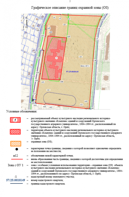 Региональное правительство в соответствии с положительным заключением государственной экспертизы определило зоны охраны объекта культурного наследия регионального значения «Комплекс зданий и сооружений Орловского государственного аграрного университета, 1984–1994 гг».