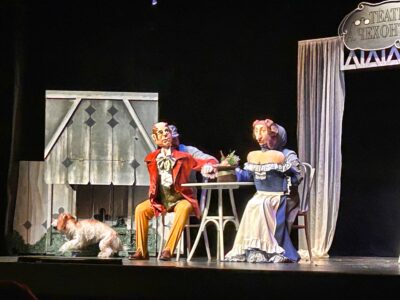 К слову, в спектакле представлена новая технология управления персонажами – их не нанизывают на руку, как перчатки. Это не марионетки, а паркетная (планшетная) кукла, которую, как пиджак, надевает на себя актер. Артисты настолько сливаются на сцене со своими «костюмами», что становятся одним целым. Я бы сравнила кукловождение в «Предложении» с искусством балета – служители Мельпомены благодаря пластичным движениям рук и ног вдохнули в кукол чувства и эмоции, благодаря чему персонажи обрели характер и живую душу. Знаток человеческой природы
