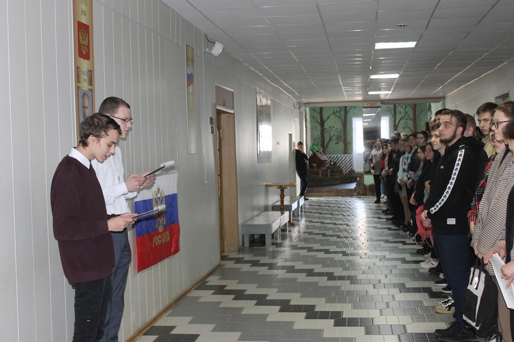 3 марта в колледже прошла еженедельная церемония спуска Государственного флага Российской Федерации.