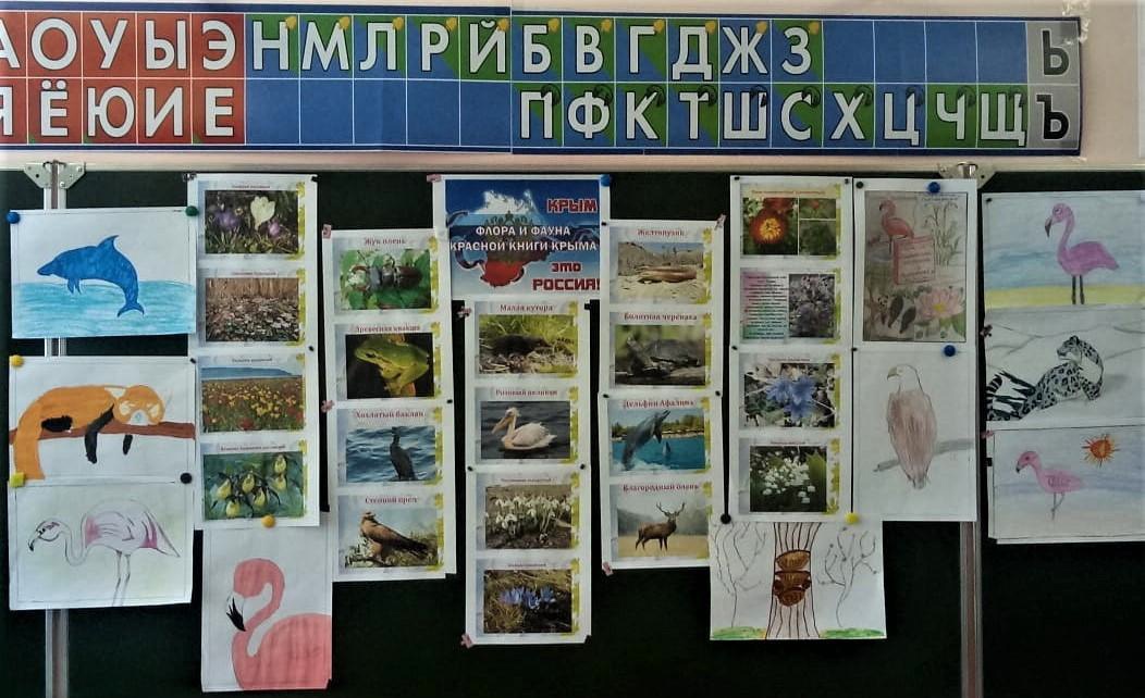 К занятию кружка "Мы познаём мир природы" в преддверии празднования дня воссоединения Крыма и России учащиеся подготовили сообщения о растениях и животных Красной книги республики Крым. Организовали выставку рисунков и фотографий "Флора и фауна Красной книги Крыма"