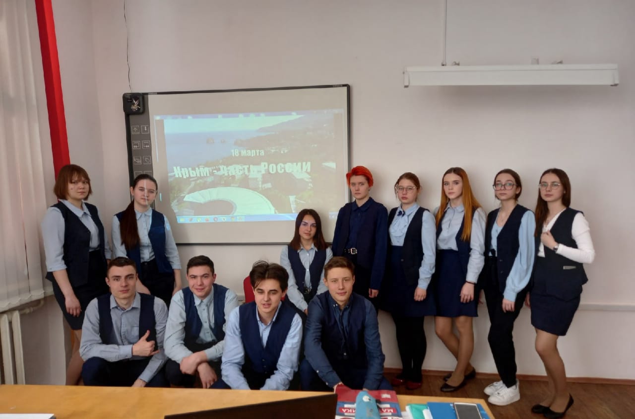 Классные руководители 1-11 классов провели единый классный час: «Россия и Крым – вместе навсегда!». В ходе классных часов учащиеся получили сведения о географическом положении Крыма, о его историческом и культурном прошлом, провели заочное путешествие по местам Крымского полуострова. Школьники оценили значимость такого события в истории нашей страны.