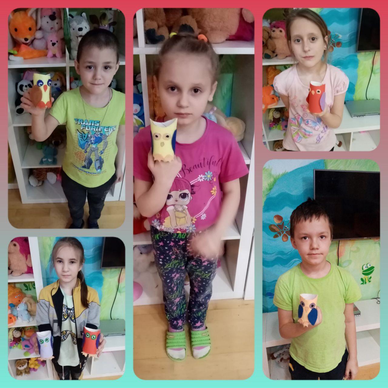 В творческой мастерской, под руководством воспитателя Чекановой М.А. воспитанники учились делать поделку вместе, помогая друг другу. В работе использовали бросовые материалы: втулки, упаковочный картон, фетр.