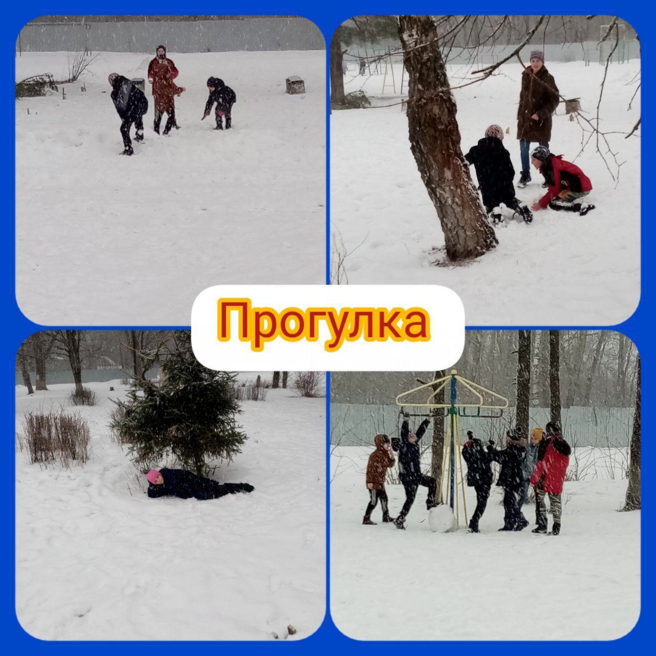 На улице комфортная погода - отличный повод для прогулки, которая доставила массу приятных моментов, дети с удовольствием поиграли со снегом.