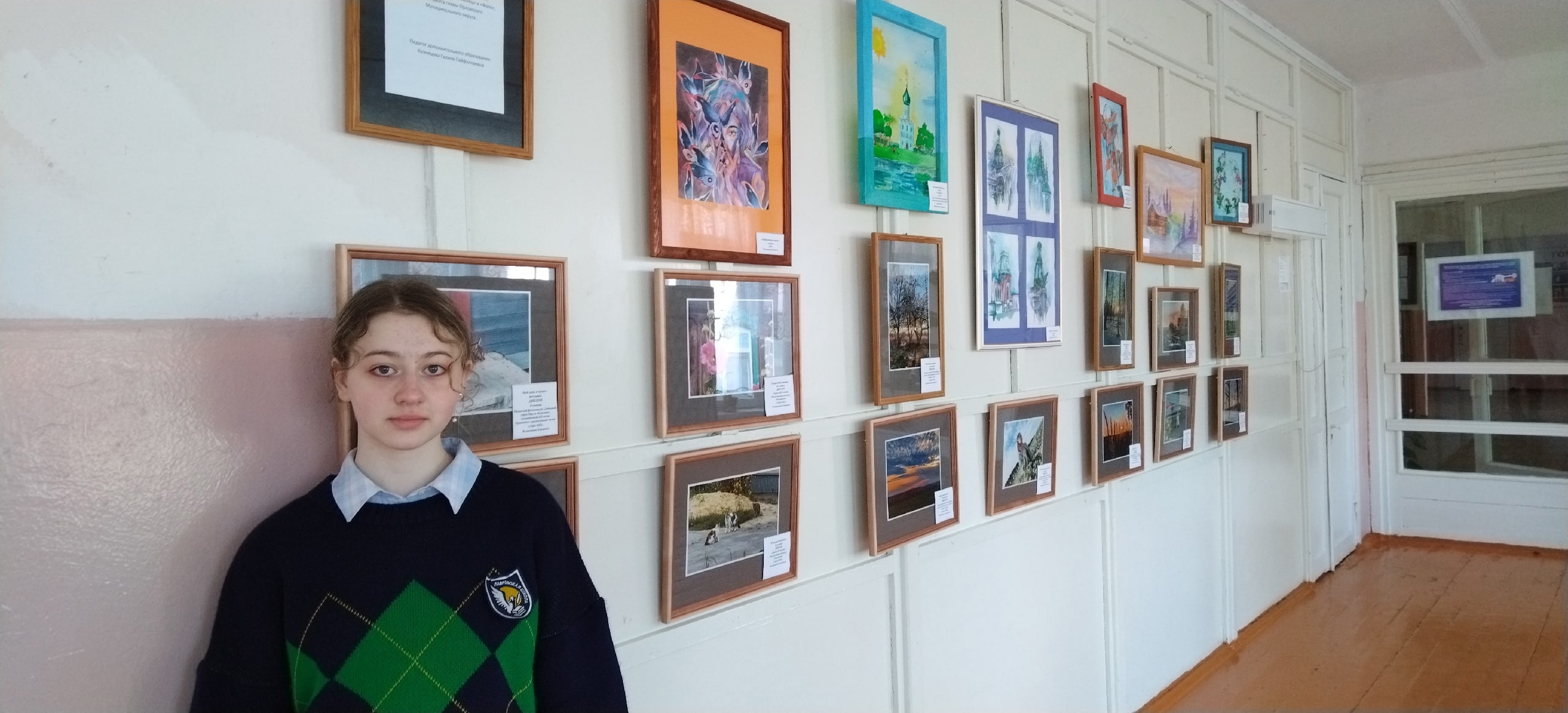И теперь ее работы представлены на выставке, которая открылась 2 мая 2023 года в родной школе.