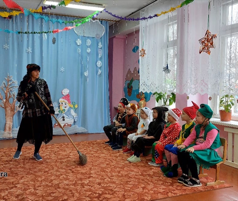 Ребята из старшей группы ходили колядовать к малышам. К ним в гости приходили Коза, Баба-Яга.