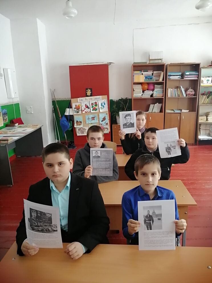 Ребятам была показана презентация «Герои России в ходе спецоперации на Украине», где демонстрировались портреты участников СВО, павших смертью храбрых, а также фото первых Героев, отдавших жизнь за Родину. Под портретами военнослужащих давалось описание подвига, совершенного во имя Родины. Обучающиеся подготовили сообщения о наших земляках - участниках специальной военной операции. Память погибших воинов почтили минутой молчания. Нынешние Герои России встанут в один ряд с дедами и прадедами, защитившими Родину в 1941-1945 годах, а их подвиги навечно войдут в историю побед нашей страны.