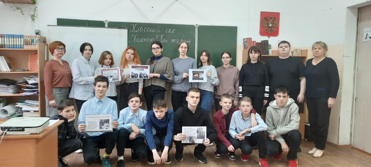 На классных часах проводились беседы о том, какое место занимает тема концлагерей в истории России и Великой Отечественной войны. Ребята смогли увидеть весь ужас, испытанный взрослыми и детьми в лагерях Холокост, Освенцим, Бухенвальд и других концлагерях. Также был просмотрен видеофрагмент, в котором школьники разных городов делятся своими знаниями по теме «Что такое Холокост?».
