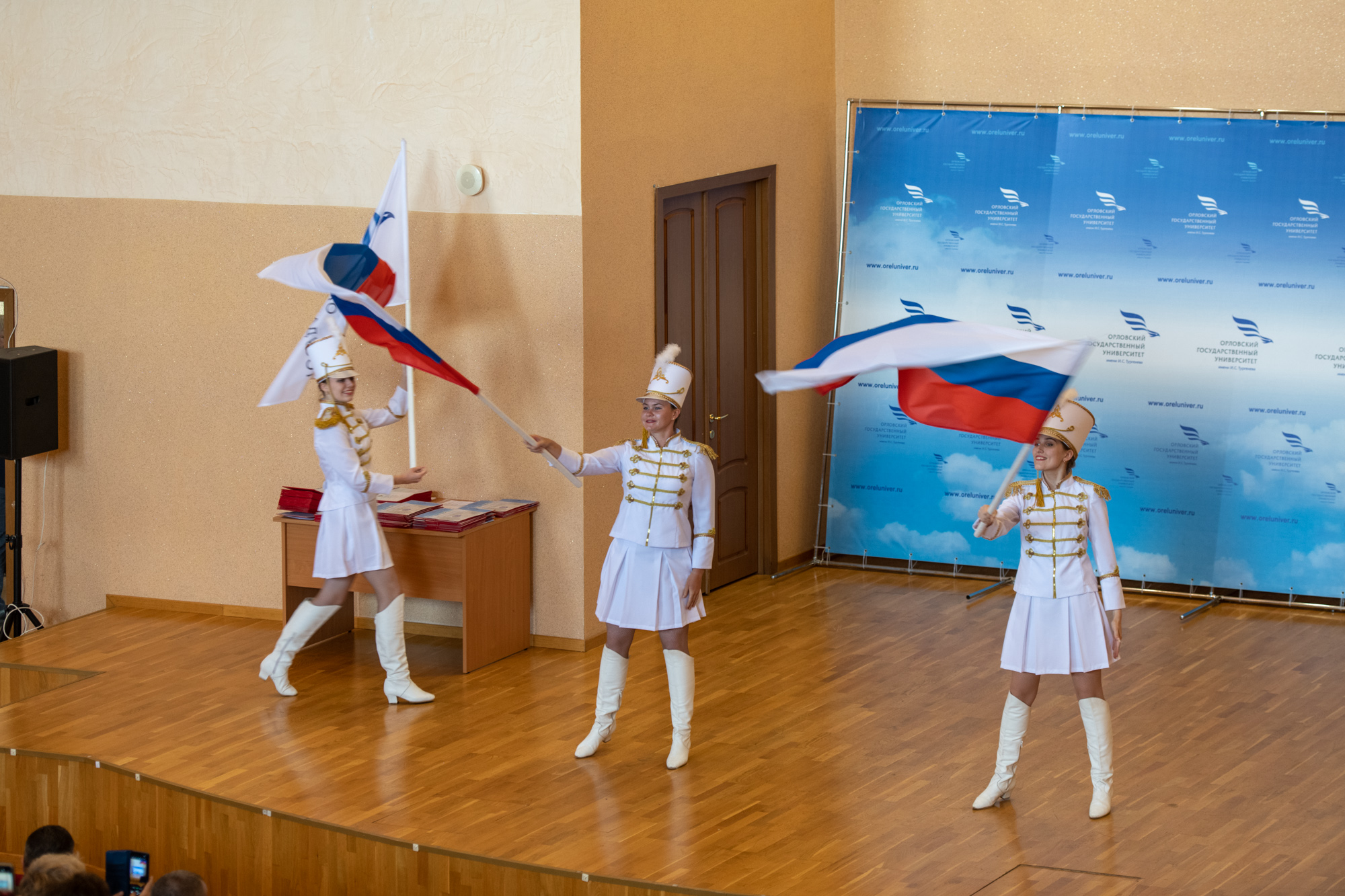 С успешным окончанием университета вчерашних студентов пришли поздравить Губернатор Орловской области Андрей Клычков, первый заместитель Председателя Орловского областного Совета Михаил Вдовин, Председатель Орловского городского Совета народных депутатов Василий Новиков и митрополит Орловский и Болховский Тихон.