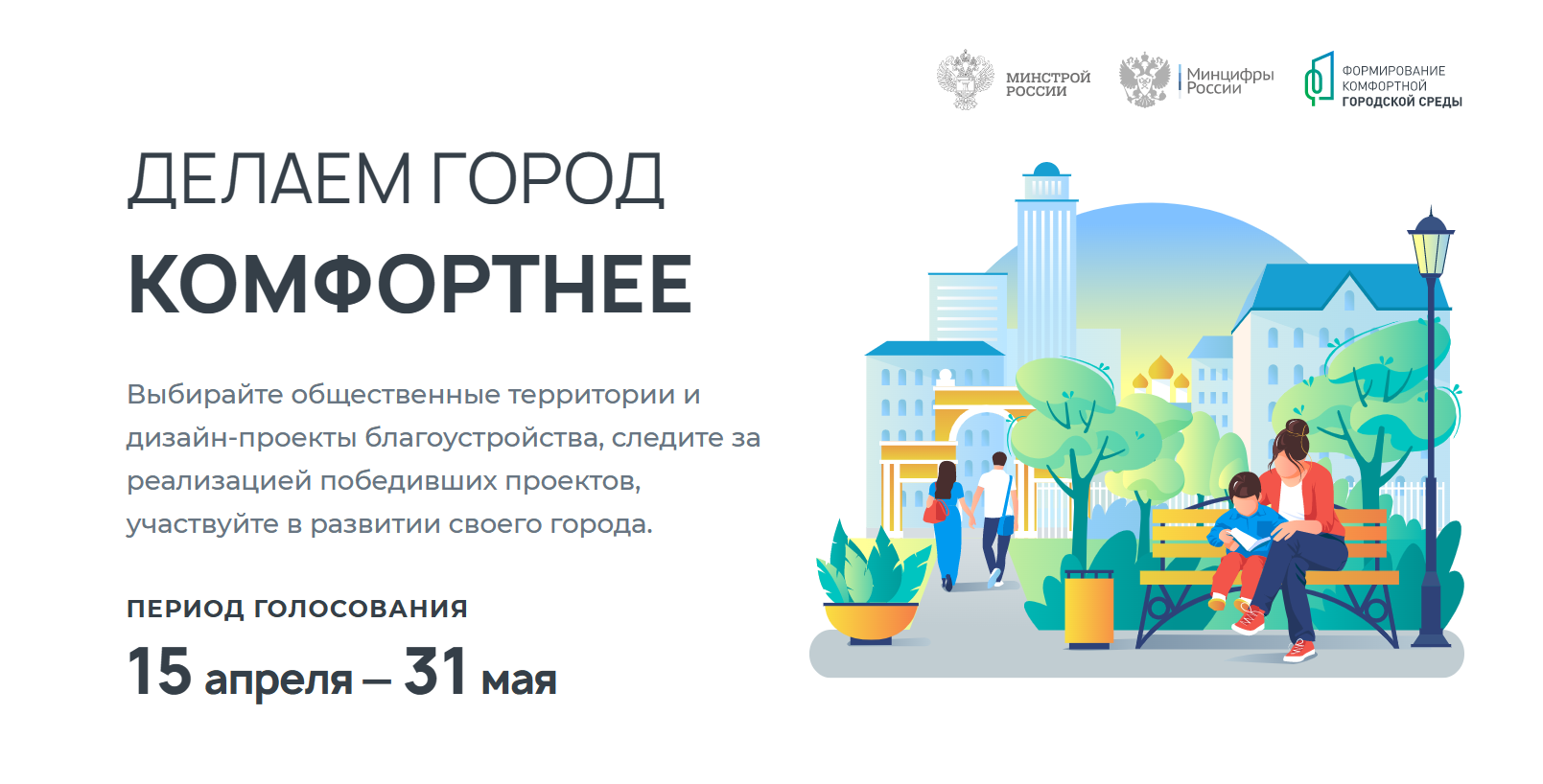 15 апреля 2023 года стартует Всероссийское голосование за благоустройство общественных пространств в рамках федерального проекта «Формирование комфортной городской среды» национального проекта «Жилье и городская среда».