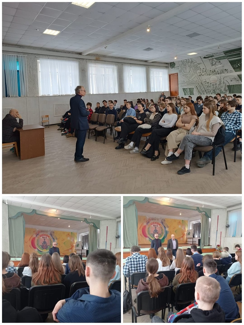 Накануне праздника День Защитника Отечества учащиеся школы встретились с куратором поискового отряда «Безымянный солдат", который является председателем МПО «Огненная дуга» Н. А. Андрееевым.