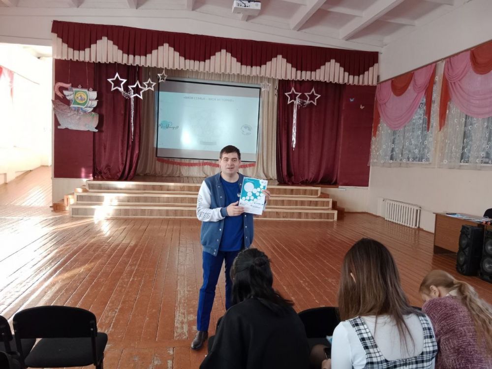 Руководитель Мценского городского отделения Всероссийского общественного движения «Волонтеры Победы» Владимир Лилев в рамках направления «Моя история» образовательного проекта «Моя семья - моя история» провел урок по изучению семейной истории для учеников 10 класса лицея №5.
