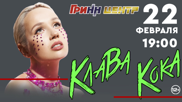 22 февраля в 19:00 состоится концерт Клавы Коки в "Гринн-Центр". Стоимость билетов: 1870 - 3850 руб.