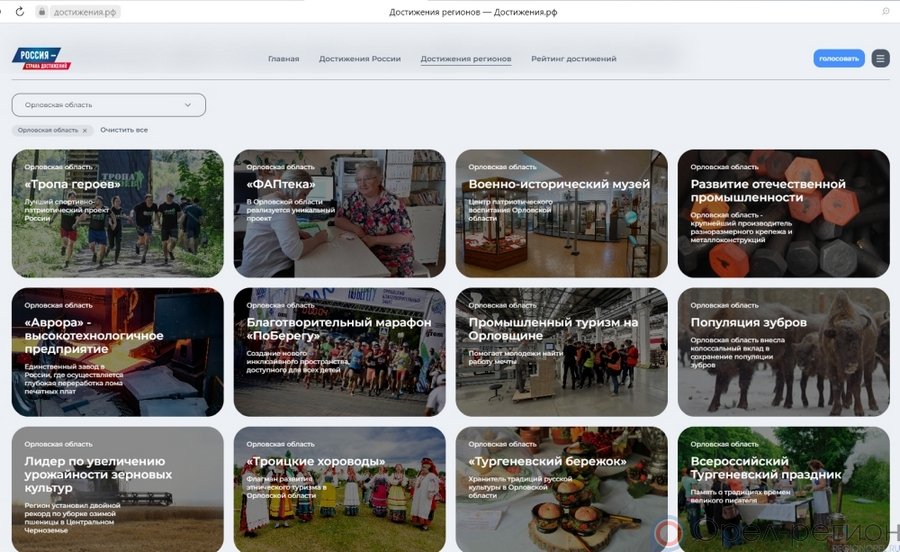 Достижения Орловской области участвуют в голосовании в рамках всероссийского проекта