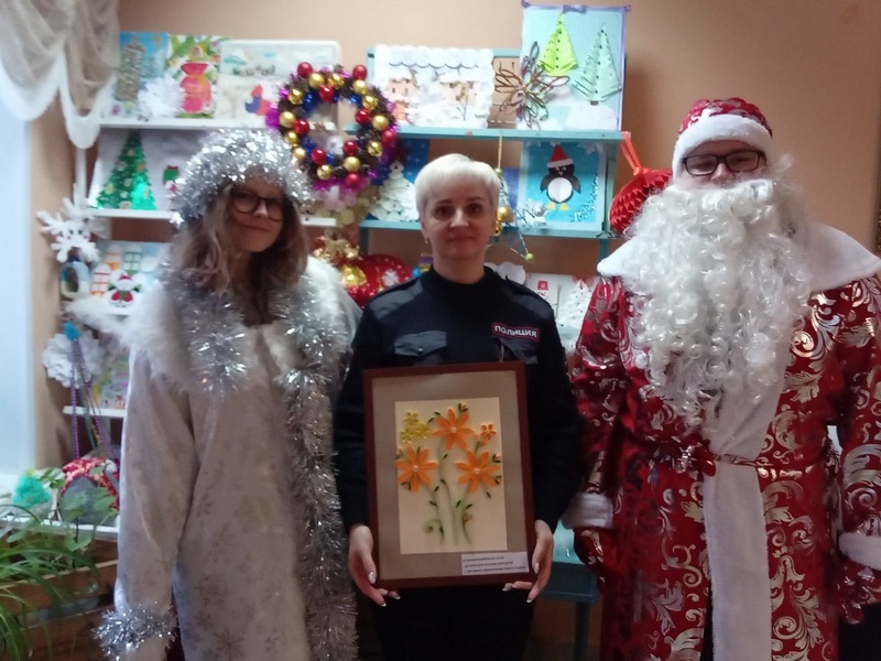 Дедушка Мороз и Снегурочка совместно со стражами порядка посетили выставку поздравительных открыток и пожеланий, которые подготовили ребята к Новогодним праздникам. Они украсили зал игрушками, которые сделали в своей сказочной кузнице для своих долгожданных гостей и друзей.