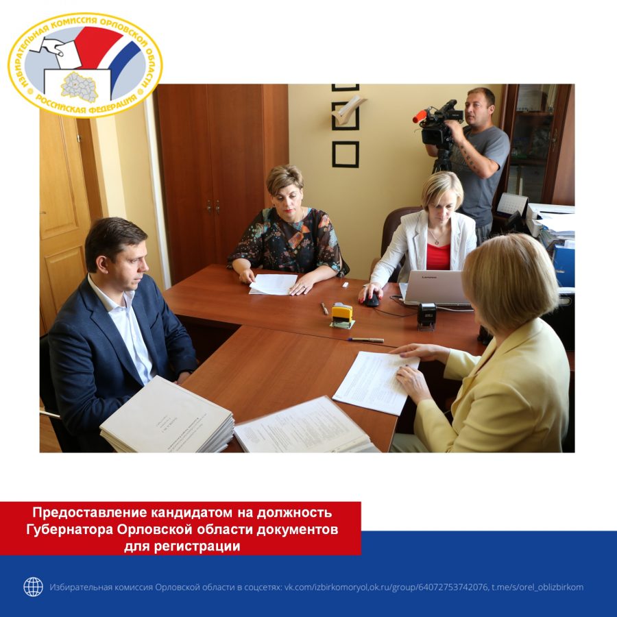 В соответствии с Законом Орловской области от 4 июня 2012 года № 1364-ОЗ «О выборах Губернатора Орловской области», Избирательная комиссия Орловской области в течение 10 дней со дня представления документов для регистрации обязана проверить соответствие порядка выдвижения кандидата требованиям действующего законодательства, а также соблюдение требований к представлению сведений о кандидатурах для наделения полномочиями сенатора Российской Федерации и принять решение о регистрации кандидата либо об отказе в регистрации.