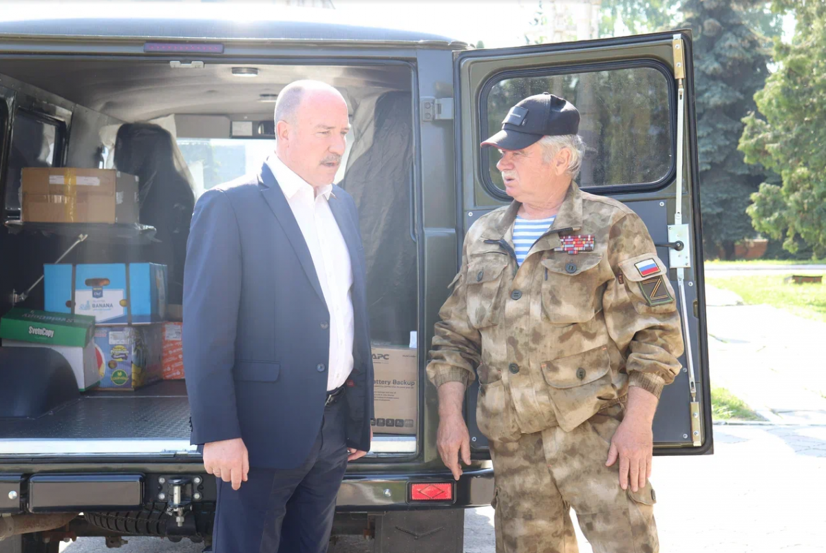 Партийцы, депутаты, представители общественных организаций, неравнодушные орловцы собрали продукты питания, воду, средства гигиены, предметы первой необходимости. Представители бизнеса - АО «Щелково-Агрохим» - передали бойцам автомобиль УАЗ.