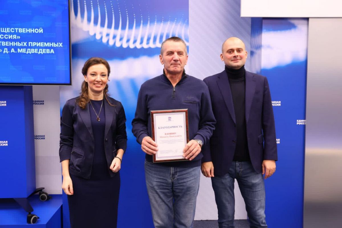 Благодарственное письмо за эффективную работу Орловской региональной общественной приемной председателя «Единой России» Д.А. Медведева получил ее руководитель, первый заместитель председателя областного Совета народных депутатов Михаил Вдовин .