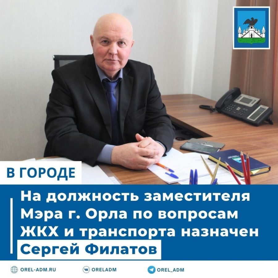 На должность заместителя мэра г. Орла по вопросам ЖКХ и транспорта назначен Сергей Филатов.