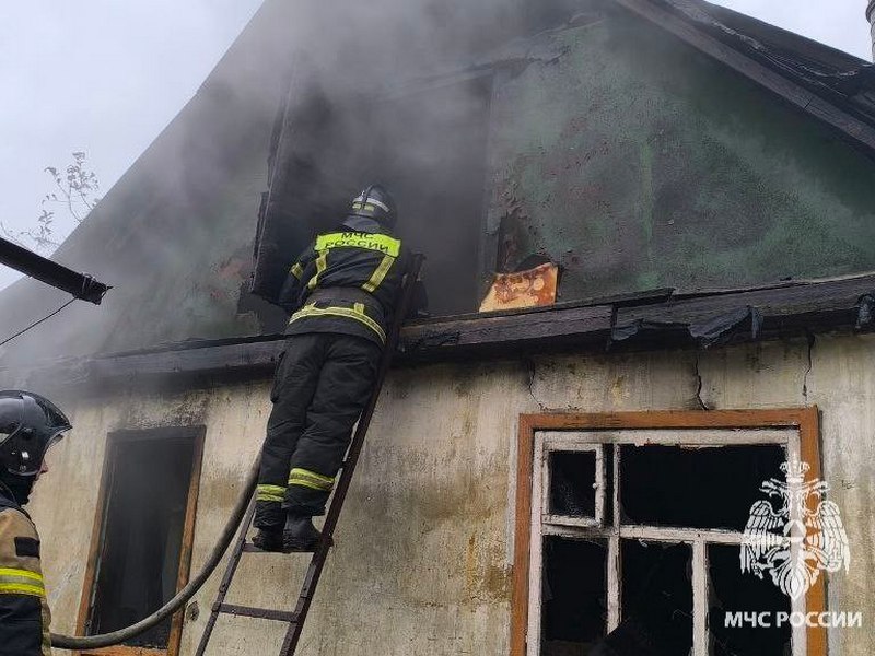 К приезду огнеборцев на место чердачное помещение части дома было охвачено открытым пламенем. Сотрудники МЧС России спасли мужчину – пострадавшего передали медикам для госпитализации. Также была спасена собака.