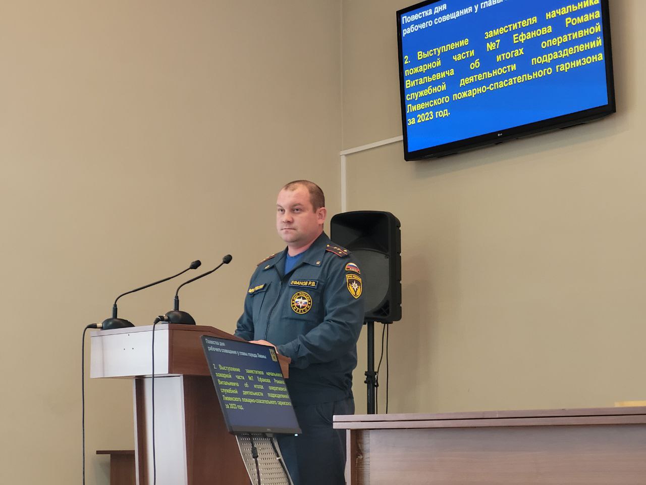 Как сообщили в администрации Ливен, на оперативном совещании при главе города были обсуждены итоги оперативной служебной деятельности подразделений Ливенского пожарно-спасательного гарнизона за 2023 год. С докладом по данному вопросу выступ заместитель начальника пожарной части №7 Роман Ефанов. Он сообщил, что состав Ливенского пожарно-спасательного гарнизона входят четыре подразделения: ПСЧ-7 (МЧС РФ), а также ПЧ-8, ПЧ-39, ПЧ-40 (областной аварийно-спасательный отряд).