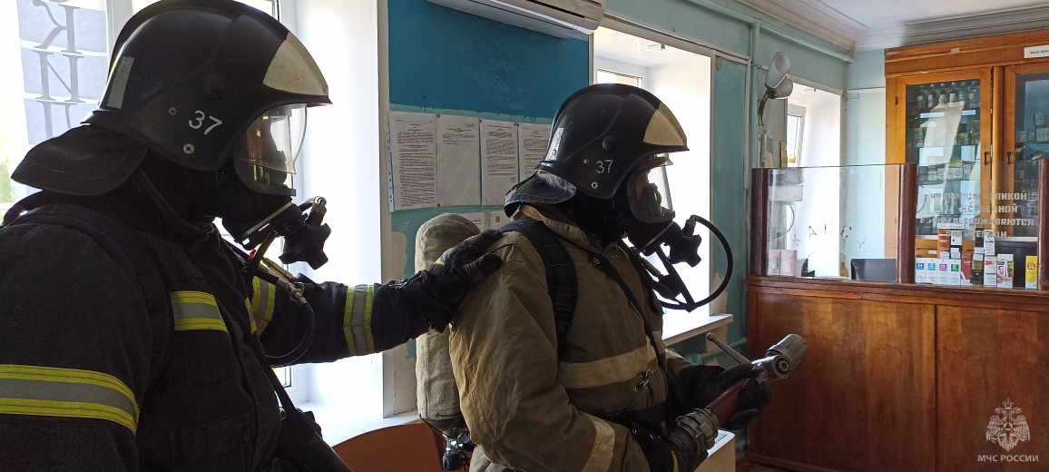 В поселке Шаблыкино прошло пожарно-тактическое занятие в здании аптеки № 23.