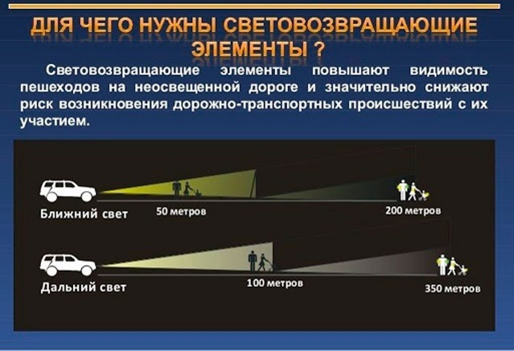 В темное время суток необходимо иметь на одежде световозвращающие элементы.