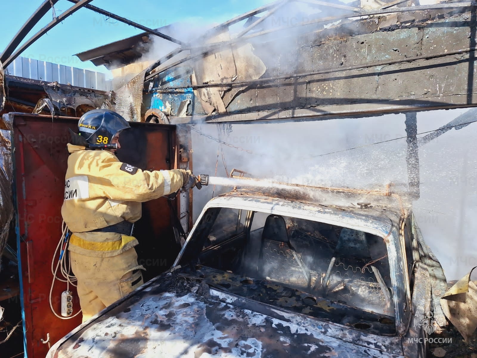 «Пострадавших нет», – отметили в ведомстве. Однако, судя по фотографиям с места события, пламя существенно повредило и гараж, и находившийся в нём автомобиль.
