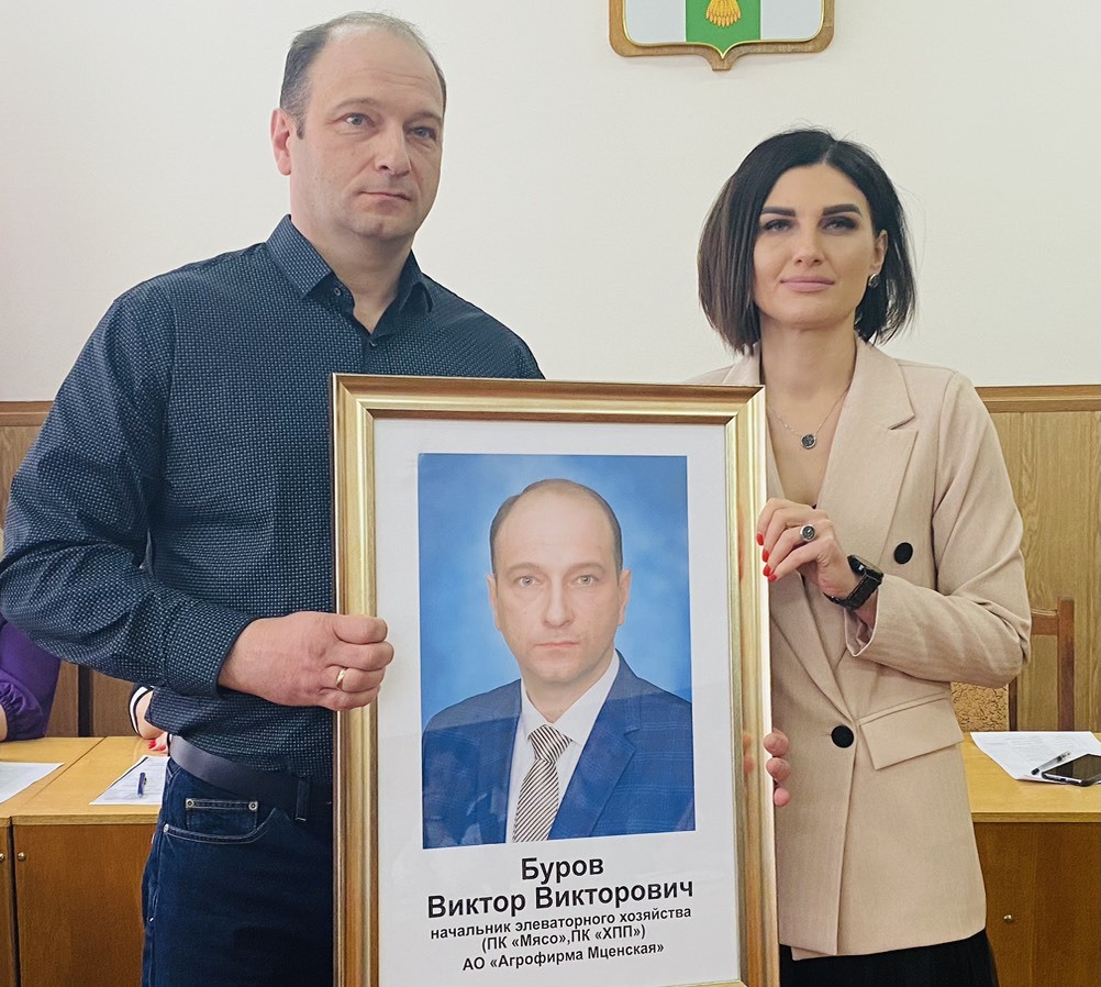 Глава Мценского района Екатерина Ерохина вручила фотопортреты работникам организаций и учреждений района, которые занимали почетное место в Галерее трудовой славы в 2023 году