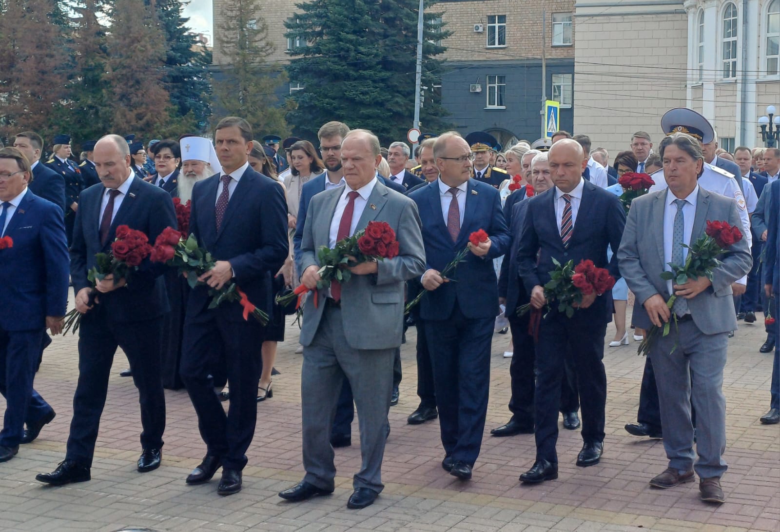 В торжественном мероприятии приняли участие руководители области, города, почётные гости и делегации, прибывшие на празднование Дня города. Депутаты областного и городского Советов, а также жители города возложили цветы к стеле «Город воинской славы» и почтили минутой молчания всех тех, кто отдал жизни за независимость нашей Родины.