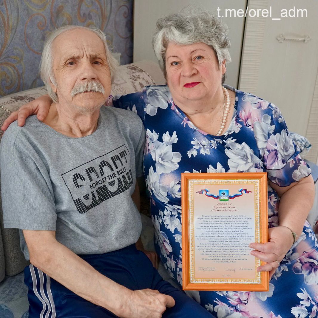 От лица администрации города Орла еще раз поздравляем Вас с 50-летием совместной жизни! Пусть каждый день будет светлым и радостным в окружении детей, внуков и правнуков.