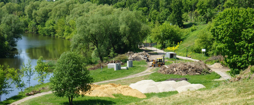Что касается общего хода благоустройства, то мэр сообщил, что «идет подготовка основания под укладку тропиночной сети и к устройству дренажных сетей. Это принципиально важный момент, без него наше благоустройство сползет в течение считанных лет. Поэтому все склоны укрепляются геосеткой, затем накрываются дерном».