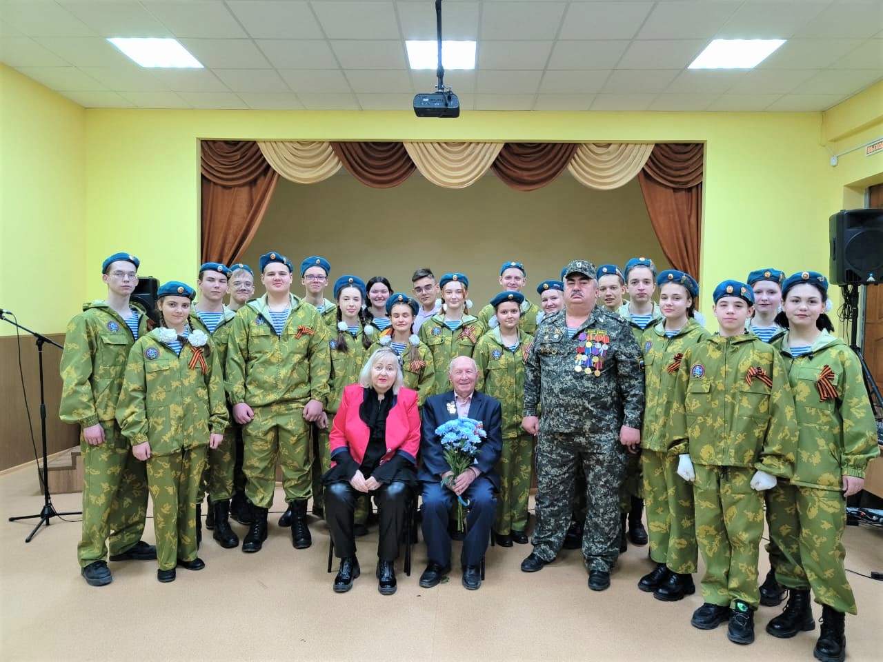 После торжественной части у ребят появилась возможность поговорить с Героем. Он рассказал о тяготах жизни блокадного Ленинграда, о бессмертном подвиге русских людей в военные годы. Также гости посетили школьный этнографический музей «Русская изба».