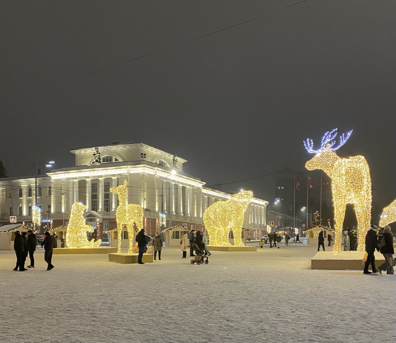Светящихся животных разместили на пересечении улиц Ленина и Пролетарская гора. По три оленя и медведя поставил предприниматель Гусев А.А. из Санкт-Петербурга. Цена контракта превысила 8,6 млн рублей.