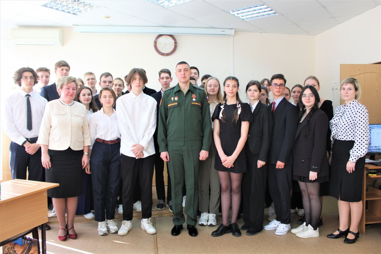 В канун Дня защитника Отечества в лицее №1 им. М.В. Ломоносова и в школе №35 прошли встречи с участником СВО – санинструктором Алексеем. В преддверии праздника педагоги и ученики собрались, чтобы поговорить о русской воинской доблести, узнать историю сегодняшнего дня из первых уст.